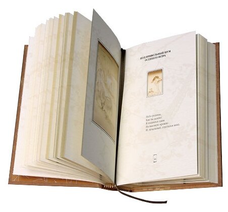 Полиграфическое исполнение очень достойно. Присутствуют все элементы подарочной книги (коробочка, тиснение, золотые обрезы, ляссе и пр.) и, в то же время, удалось соблюсти меру. Я имею ввиду то, что разлада между текстом и оформлением нет. Я доволен в высшей степени!