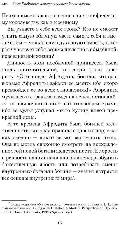 В какой мере истории жизни всех женщин похожи между собой и в чем состоит их существенное психологическое отличие? Какое место в жизни женщины занимают мужчины на разных этапах ее развития? Как женщины могут обнаружить в себе Психею и Афродиту? Что такое женская зрелость? Ответы на все эти вопросы можно найти в увлекательной книге Роберта Джонсона, посвященной глубинным проблемам женской психологии.