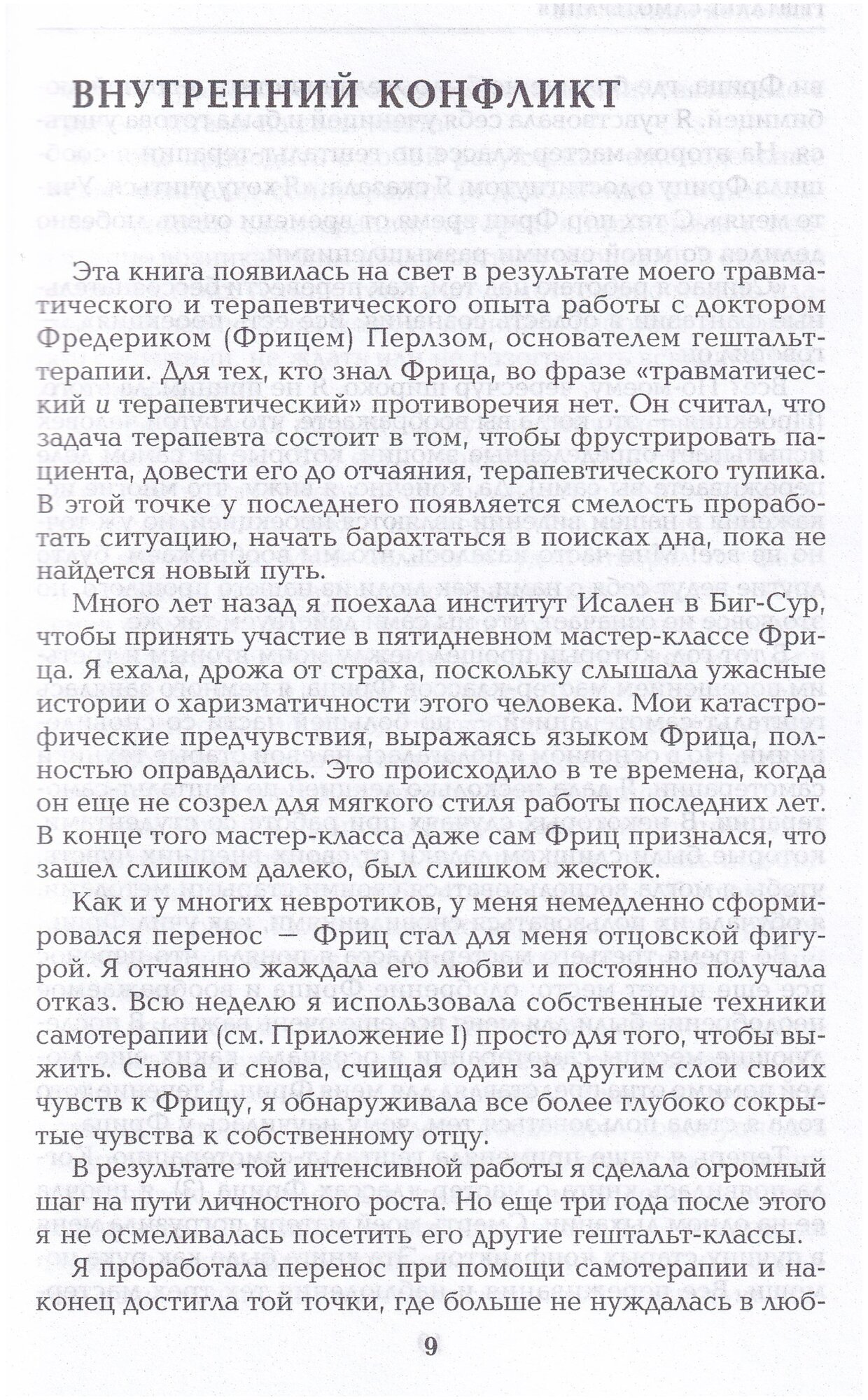 .в соответствии со своими подлинными чувствами до сих пор «живут» внутри нас и «руководят» разными сферами нашей жизни. Каждый раз, когда мы чрезмерно реагируем на других, мы что-то проецируем на них из своего прошлого. Это подходящий случай для применения гештальт-самотералии: так можно обнаружить скрытую часть себя, которая вызывает невротические реакции, провальное поведение, мешает удачному браку и успешной самореализации.