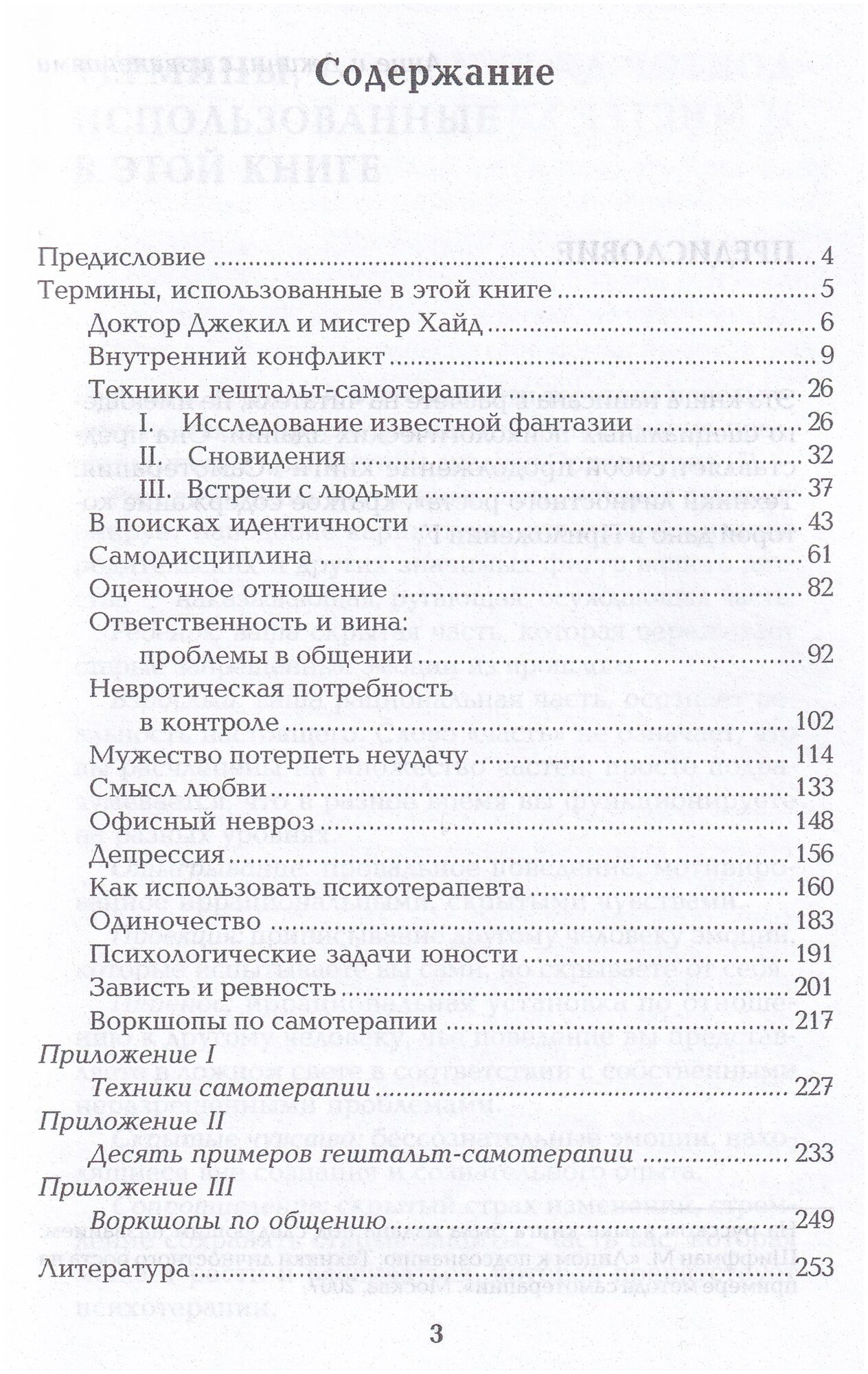 Книжка в мягкой обложке, напечатана на газетной бумаге. Интересно написана и читается легко. Рассматриваются проблемные ситуации в повседневной жизни любого человека - проблемы взаимоотношений и общения людей. В приложении приведены техники самотерапии, есть список использованной литературы для более подробного изучения вопросов.