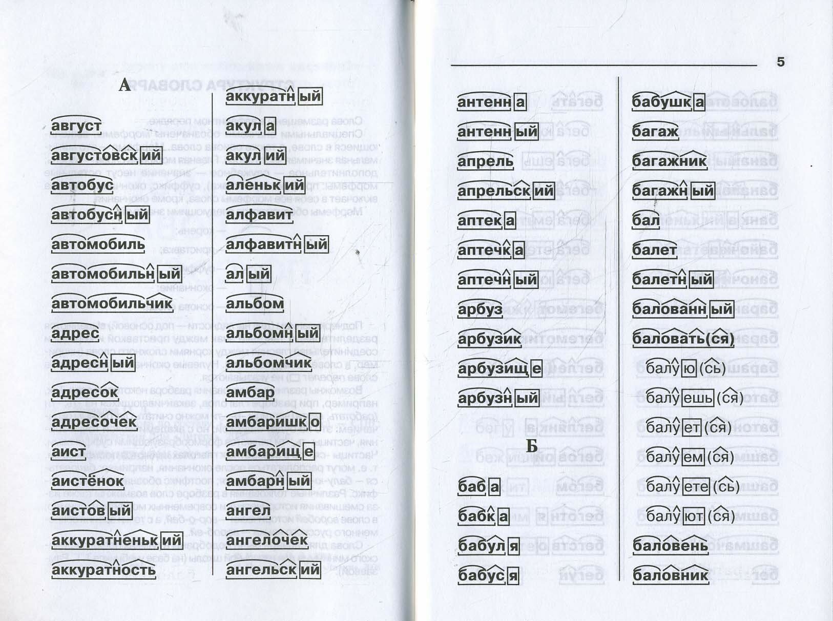 Нужная книжечка для младших школьников.В ней дан разбор слов по составу. Для удобства работы слова приведены в алфавитном порядке. В этой книжечке собран орфографический минимум для начальной школы.В словах выделены морфемы и основа.Моей дочке эта книжечка очень пригодилась на уроках русского языка.Очень рекомендую!