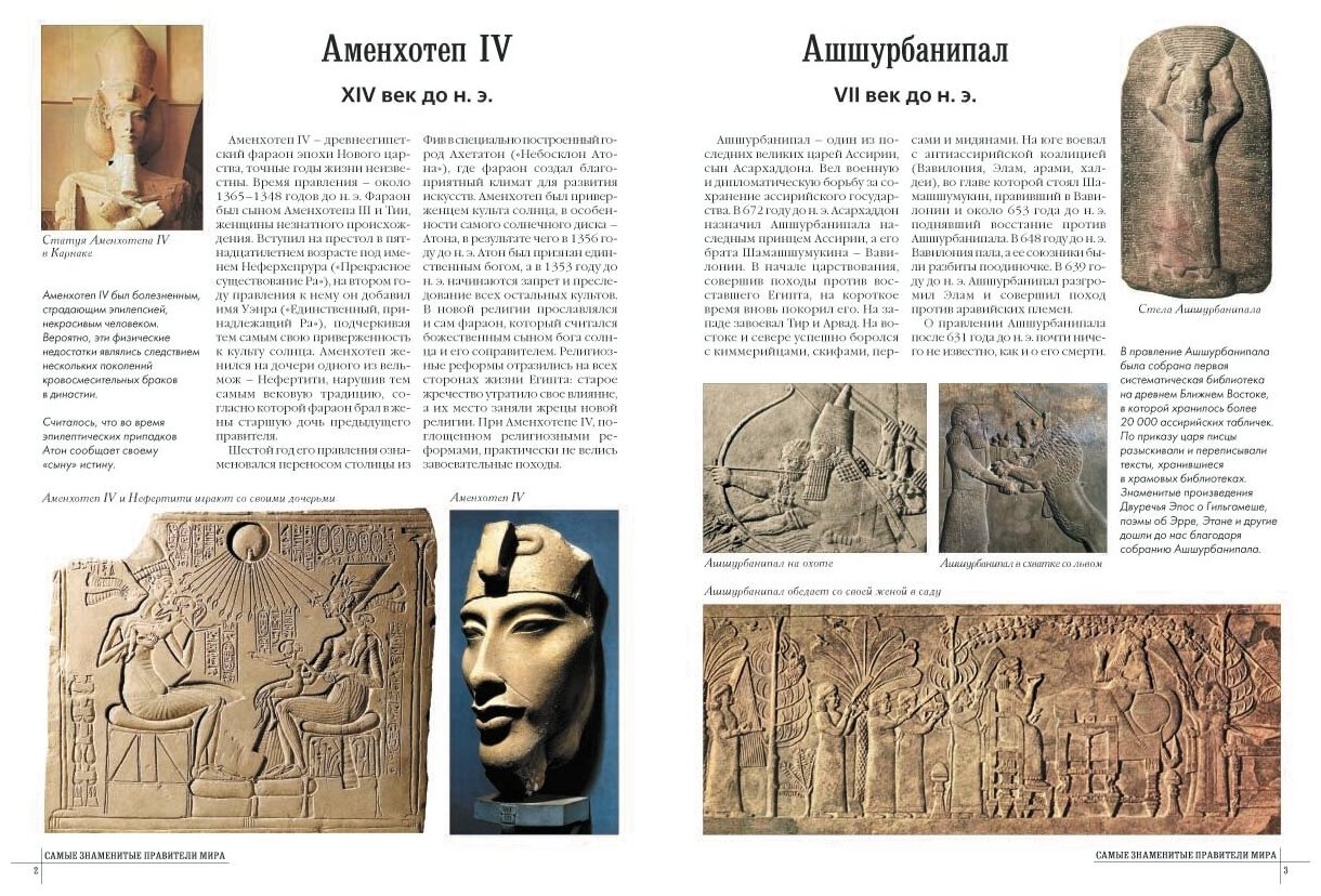 Книжка, как многие другие из серии "Самые знаменитые", полезна с точки зрения повышения общего уровня знаний и в качестве начального пункта самостоятельной работы ребёнка. Скажем, на вопросы дитяти типа: "А когда воевал Чингисхан?" или "А что за король Ричард Львиное Сердце из "Робин Гуда"?" "А Ричард III из Шекспира?" или "А какой по счёту Людовик был последний?" и пр. и пр., ответ можно дать один: посмотри в этой книге. А в нагрузку ещё узнай, кто такой Ашшурбанипал (да-да, с двумя Ш), живший в 7 веке до н.э.