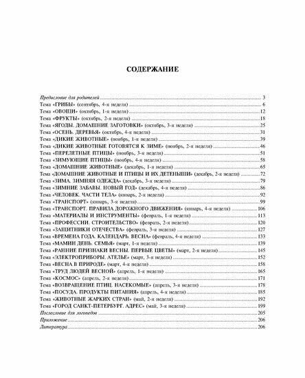 Книжка поделена на 30 тем. Каждая тема на 4 дня. На каждый день даётся упражнение (придумать слово на определённую букву, угадать какой звук произносится, гимнастика для пальчиков, обогащение словарного запаса по теме занятия, составить рассказ) В конце каждой недели даются контрольные задания - ребёнок должен вспомнить что проходили в течение всей недели, ответить на общие вопросы, выполнить небольшие задания.