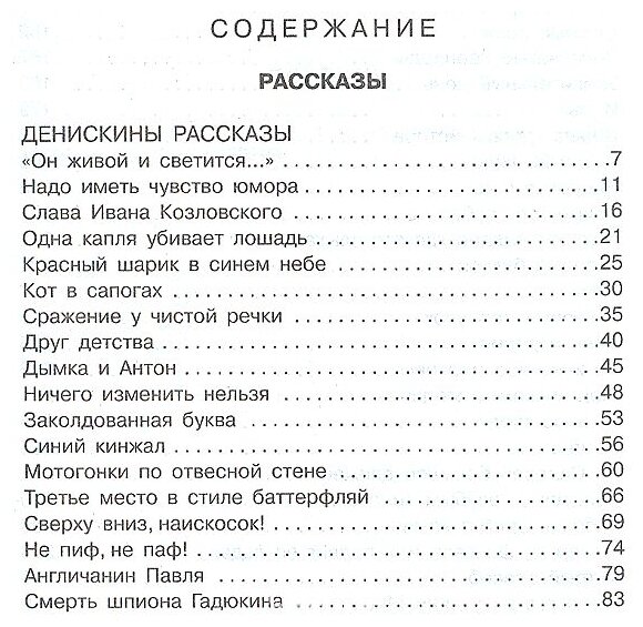 В книгу вошли веселые рассказы одного из любимых авторов нашего детства о Дениске Кораблеве и его приключениях. Книга добрая, поучительная и содержание рассказов очень увлекательное.