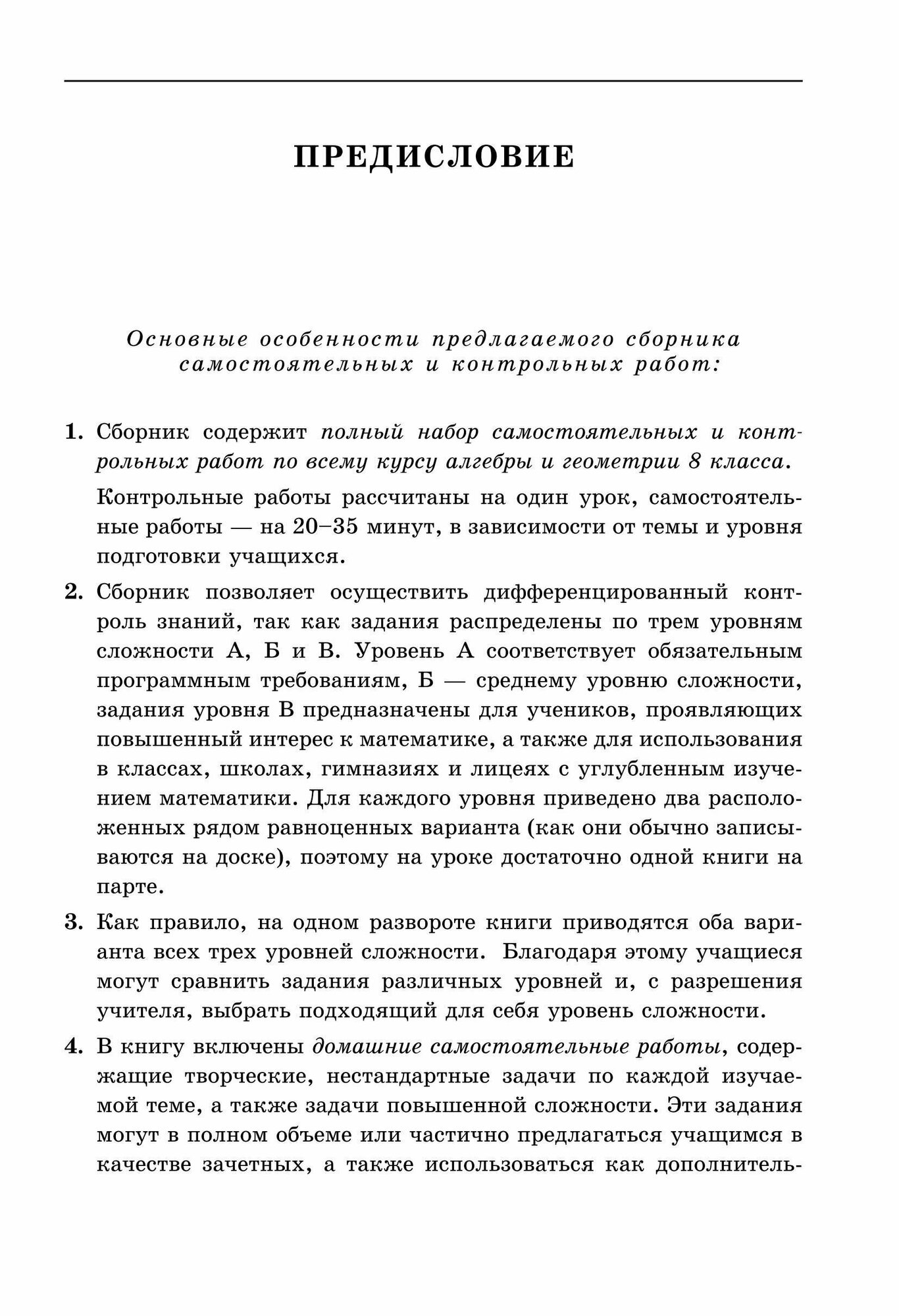 1 Сборник содержит полный набор самостоятельных и контрольных работ по всему курсу алгебры и геометрии 8 класса.