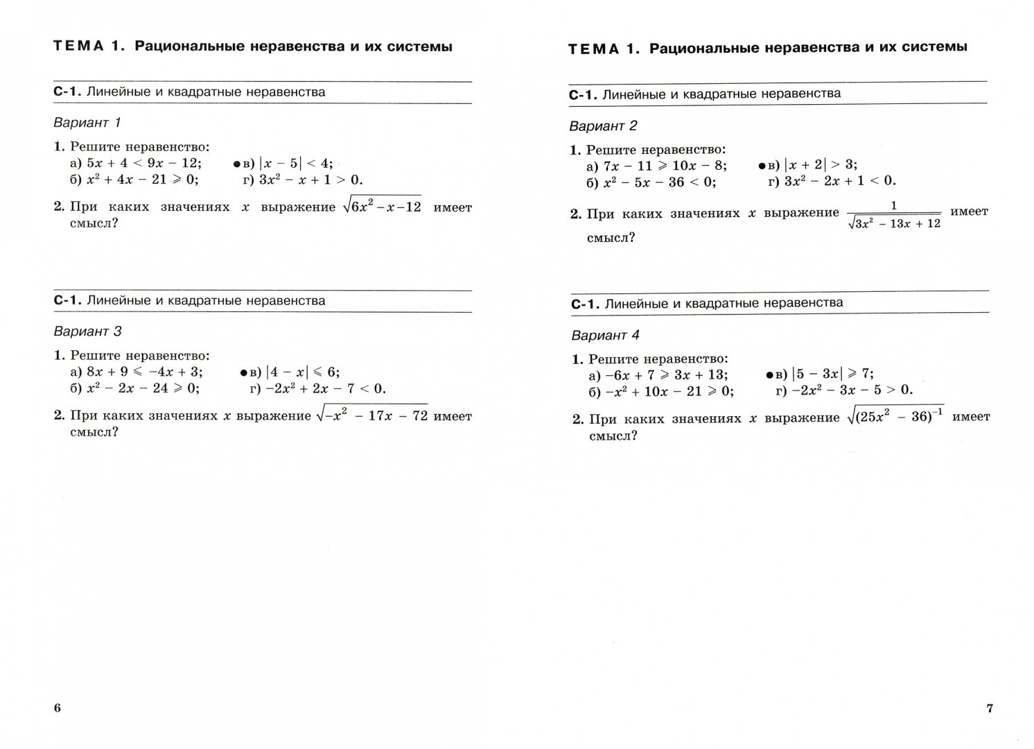 Данное пособие является частью УМК, созданного авторским коллективом под руководством А.Г. Мордковича; предназначено для учащихся общеобразовательных классов. Пособие содержит учебный материал для проведения самостоятельных работ по каждой теме и может быть использовано учителем для осуществления текущего контроля знаний, умений и навыков школьников, в качестве дополнительных упражнений, а также учащимися в целях самоподготовки.