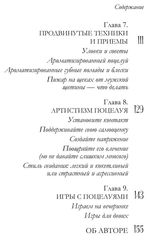Интересная книжечка. Хороший вариант для недорогого подарка. Заказывала себе, но особо ничего нового не узнала. Честно говоря, ожидала большего. Хотя, надо сказать, основная информация изложена кратко и доходчиво. Хорошо описаны техники поцелуя, советы и запреты. Книга пригодится на мой взгляд, как подросткам, так и зрелой аудитории, дабы немного освежить эмоции в отношениях.