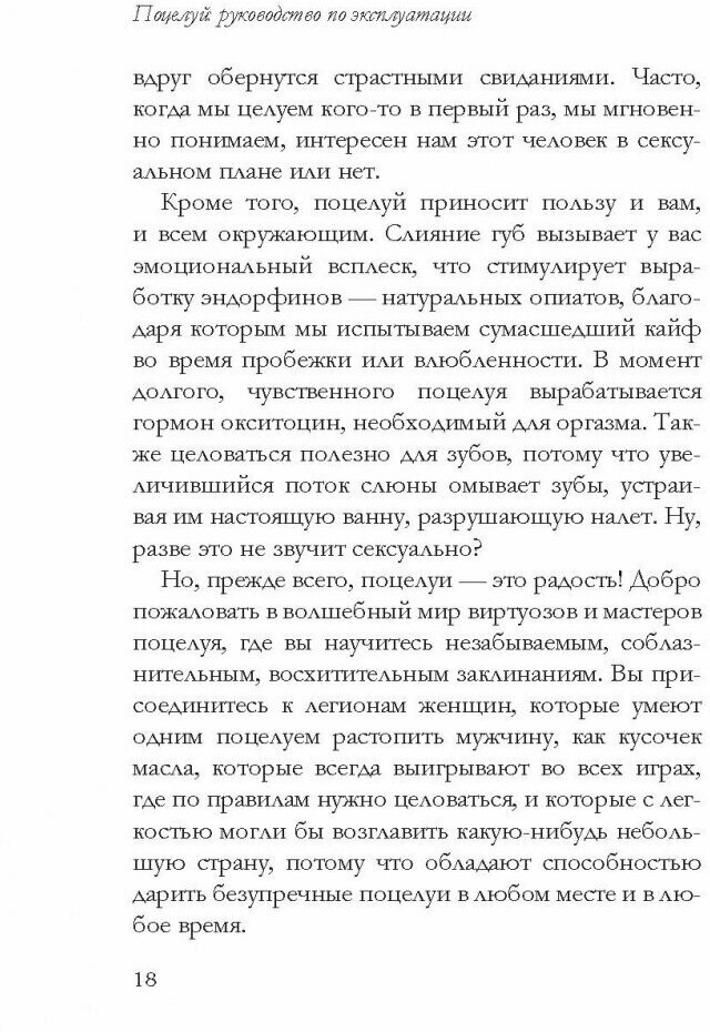 Эта книга - самое полное практическое руководство для женщин: от выбора подходящего момента для поцелуя и способов попросить мужчину поцеловать вас (даже не произнося ни слова) до "продвинутых" техник, хитрых приемов и уловок, которые сделают каждый ваш поцелуй незабываемым событием в жизни мужчины.