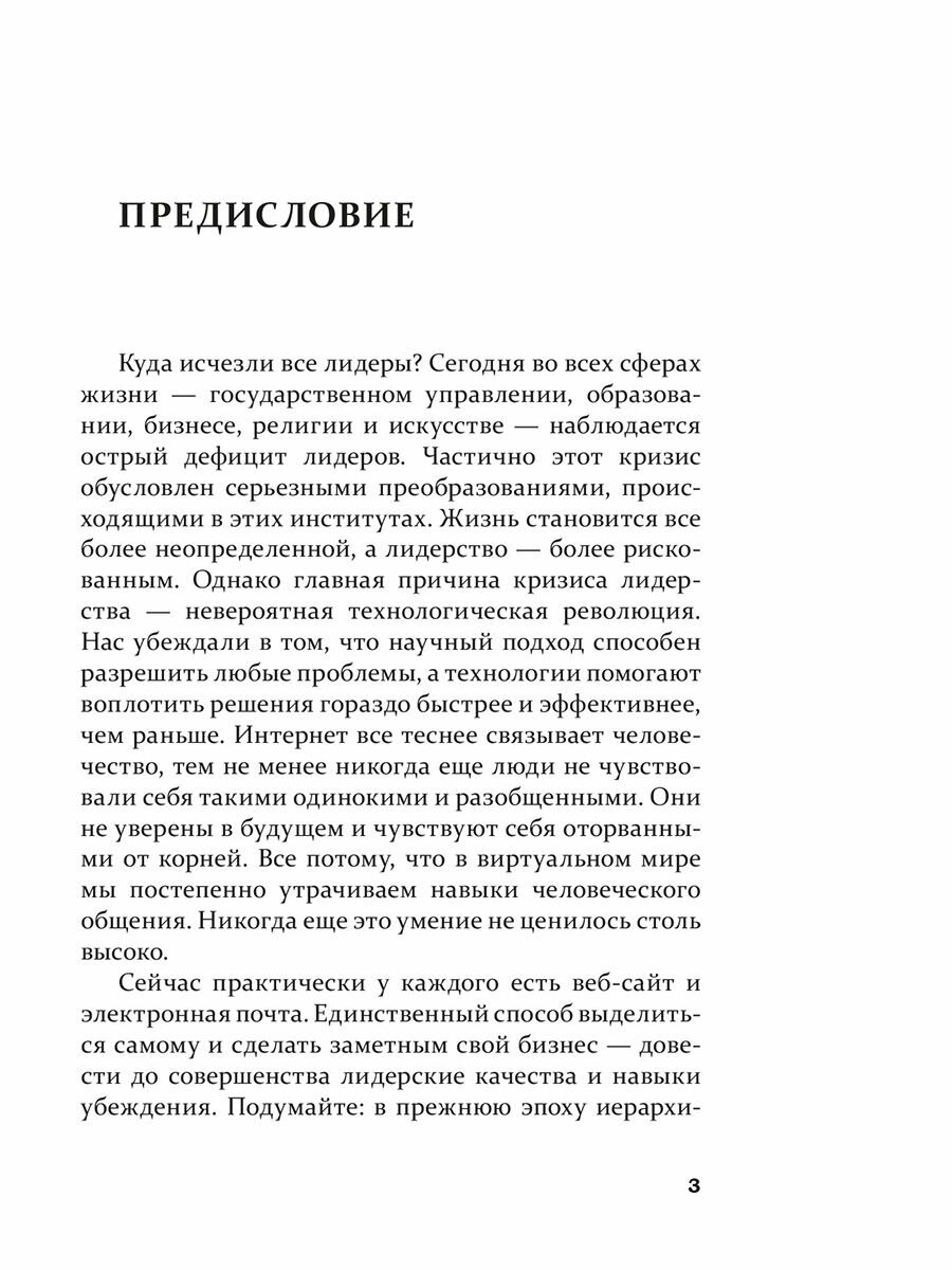 В мире, который становится всё более виртуальным, люди утрачивают навыки человеческого общения и забывают о лидерском мастерстве. Тем не менее сегодня эти качества важны как никогда. Но нам нужен лидер нового образца - умеющий вдохновлять и мотивировать других, руководствуясь извечными лидерскими принципами, такими как целеустремленность, ответственность и гибкость. Эта книга поможет вам открыть в себе самые сильные стороны и освоить стратегии, с помощью которых вы завоюете авторитет и уважение, используя секреты самых успешных лидеров; научитесь убеждать кого угодно в чём угодно; будете принимать разумные решения; сможете ставить цели и достигать их по безотказной формуле Карнеги.