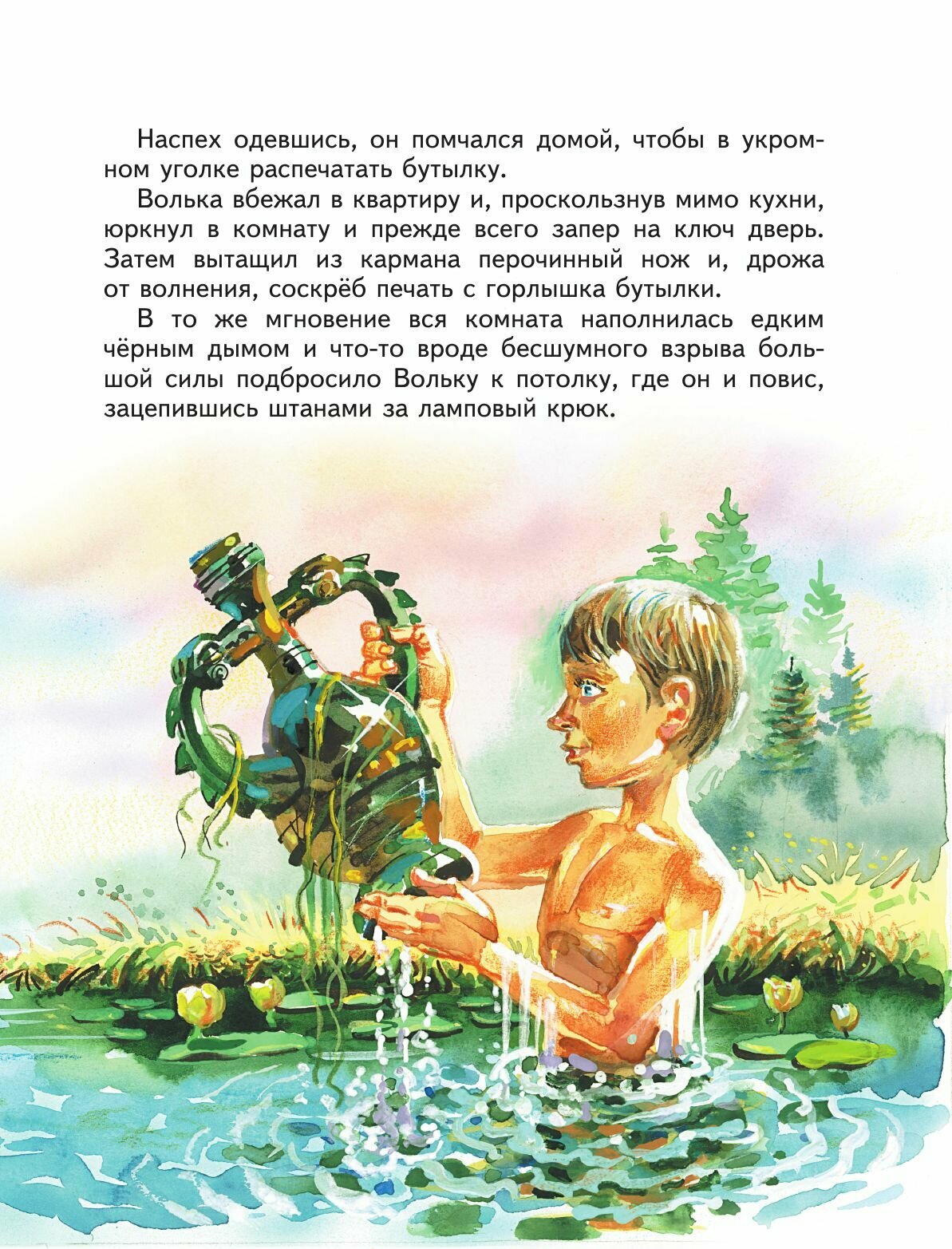 Увлекательнейшая сказка Л. Лагина о невероятных приключениях настоящего арабского джинна Гассана Абдуррахмана ибн Хоттаба (а попросту - Хоттабыча) в индустриальной Москве сразу завоевала любовь многих тысяч читателей. Оказывается, и джинны могут отстать от жизни. А кто бы не отстал, просидев в закупоренном кувшине 3000 лет? Но за это время наука и техника умчались так далеко вперёд, что добрейшему старику приходится очень несладко в новом мире. А все его попытки искренне отблагодарить своего спасителя в соответствии с древнейшим сказочным этикетом приносят больше вреда, чем пользы. Забавные и подробные иллюстрации Владимира Канивца помогают составить полную картину всех происшествий и приключений, свалившихся на голову московского школьника Вольки Костылькова вместе с выпущенным из бутылки джинном. Текст книги "Старик Хоттабыч" приводится в сокращении.