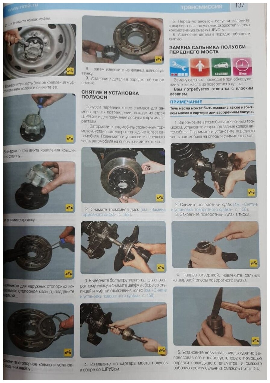 Указания по разборке, сборке, регулировке и ремонту узлов и систем автомобиля с использованием готовых запасных частей и агрегатов приведены пооперационно и подробно иллюстрированы цветными фотографиями и рисунками, благодаря которым даже начинающий автолюбитель легко разберется в ремонтных операциях.