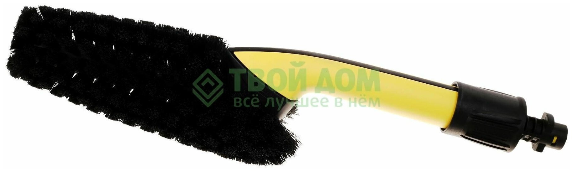 Щетка отличается равномерным распределением воды в секторе 360°. Форма щетки и распределение щетины по всему периметру позволяют превосходно очищать труднодоступные места и небольшие промежутки, например, колесные диски и спицы велосипедных колес. Щетка отличается равномерным распределением воды, смывающей грязь со всех сторон, высококачественной щетиной для эффективной и бережной очистки, надежным креплением к пистолету с помощью накидной гайки и эргономичной ручкой, облегчающей выполнение работ. Подходит к бытовым аппаратам высокого давления.