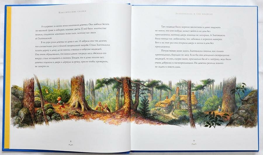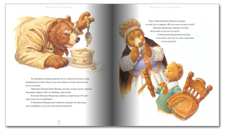 Рисунки, формат, полиграфия - выше всяких похвал! И с лихвой покрывают недостатки, которые, к сожалению, обнаружены. Не указаны сведения о переводчиках. Все-таки текст - не последний элемент книги. При чтении первого и последнего произведений (Три медведя и Три поросенка) обнаружен легкий переводческий стеб, понятный взрослому и даже вызывающий улыбку, но нужный ли ребенку? На заметку: перед подачей деткам прочтите сами. Возможно понадобится подготовиться к синхронному переложению материала!