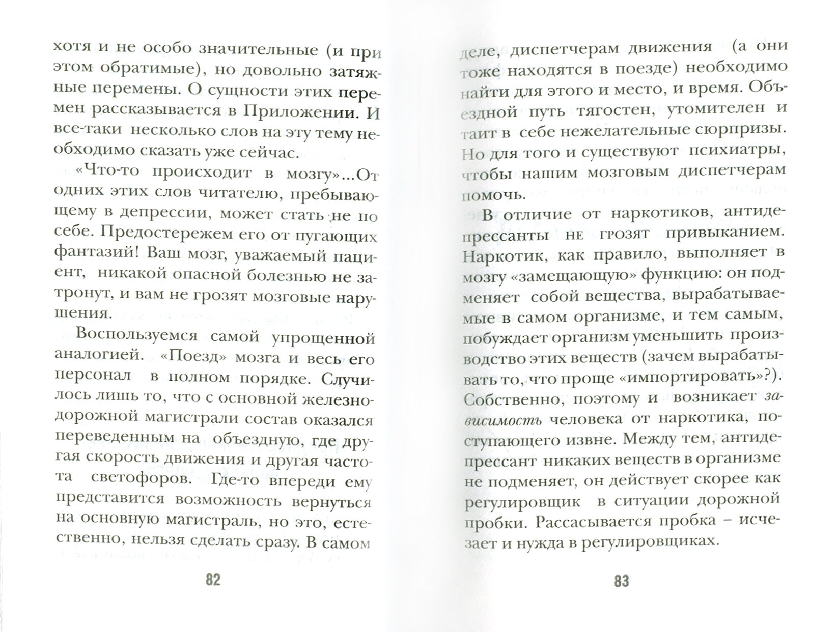 Подавленное настроение знакомо каждому. В этой небольшой книжке-памятке А.Добрович, известный ученый, автор многих книг и психиатр с многолетним практическим опытом, знакомит читателя с депрессией как болезнью, рассказывая, чем она отличается от подавленности, неизбежной в жизни любого человека. Важно вовремя распознать эту болезнь и приступить к лечению, задача которого - устранить временные неполадки биохимического уровня, возникающие в работе мозга. Сведения о природе этих неполадок и средствах их устранения вынесены в приложение. При этом основной текст памятки доступен любому читателю и направлен, прежде всего, в помощь заболевшему.