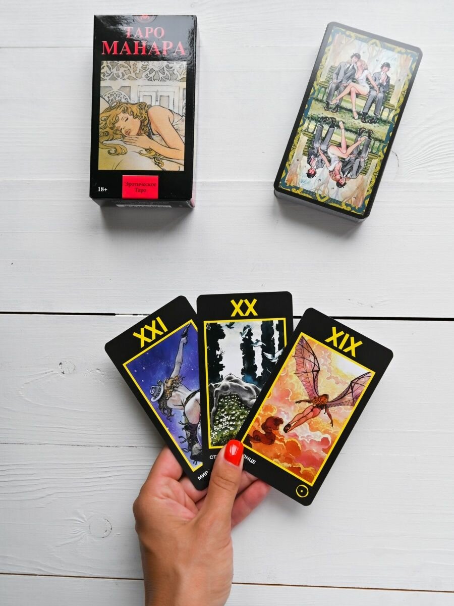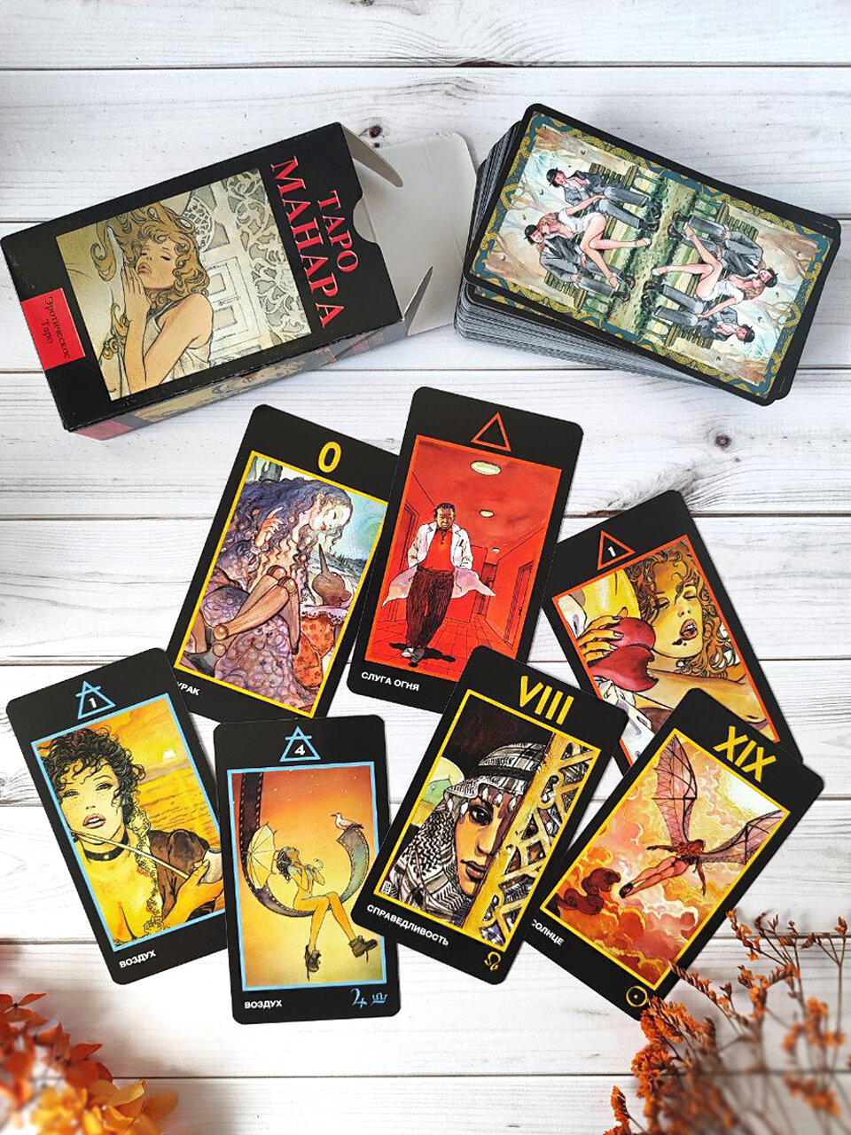 Колода Эротического Таро на русском языке, созданная итальянским художником Milo Manara, - прекрасный инструмент, который помогает разобраться в психологических тонкостях человеческой души и понять проблемы, возникающие во взаимоотношениях.