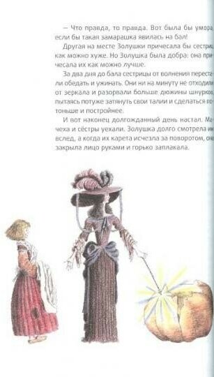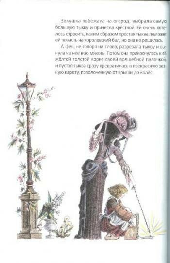 Один недостаток - в иллюстрациях нет любимой сцены на лестнице, где Золушка теряет туфельку, а также в конце сказки не показана счастливая пара - Золушка с Принцем (они, правда, есть в самом начале, на форзаце.