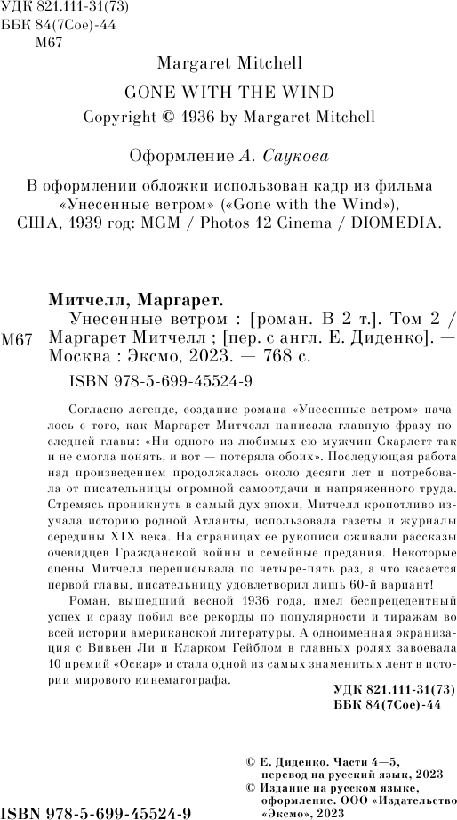 Унесенные ветром. В 2-х томах. Том 2 (Маргарет Митчелл); Эксмо, Редакция 1, 2010