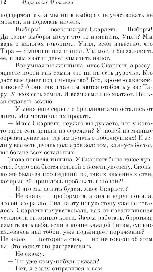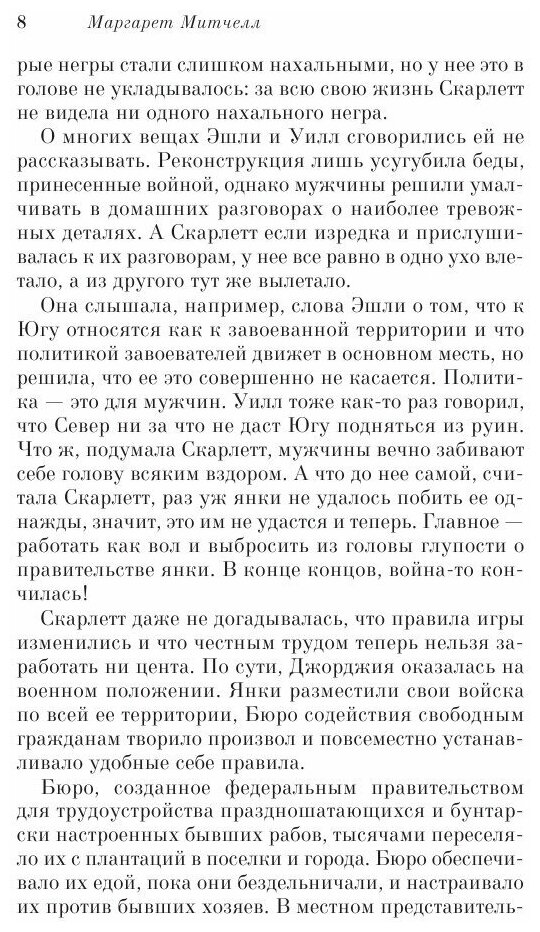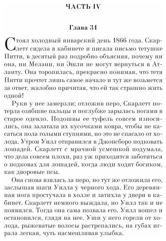 Влюбилась в эту историю, конечно же, во время просмотра фильма. НО! Протитав книгу, поняла, что в фильме некоторые события переставлены местами, а о некоторых фактах вообще ни слова. Например, что у Скарлетт было трое детей, по одному от каждого брака! Как такое можно было не показать в фильме?! Да и вообще по книге у Скарлетт немного другой характер