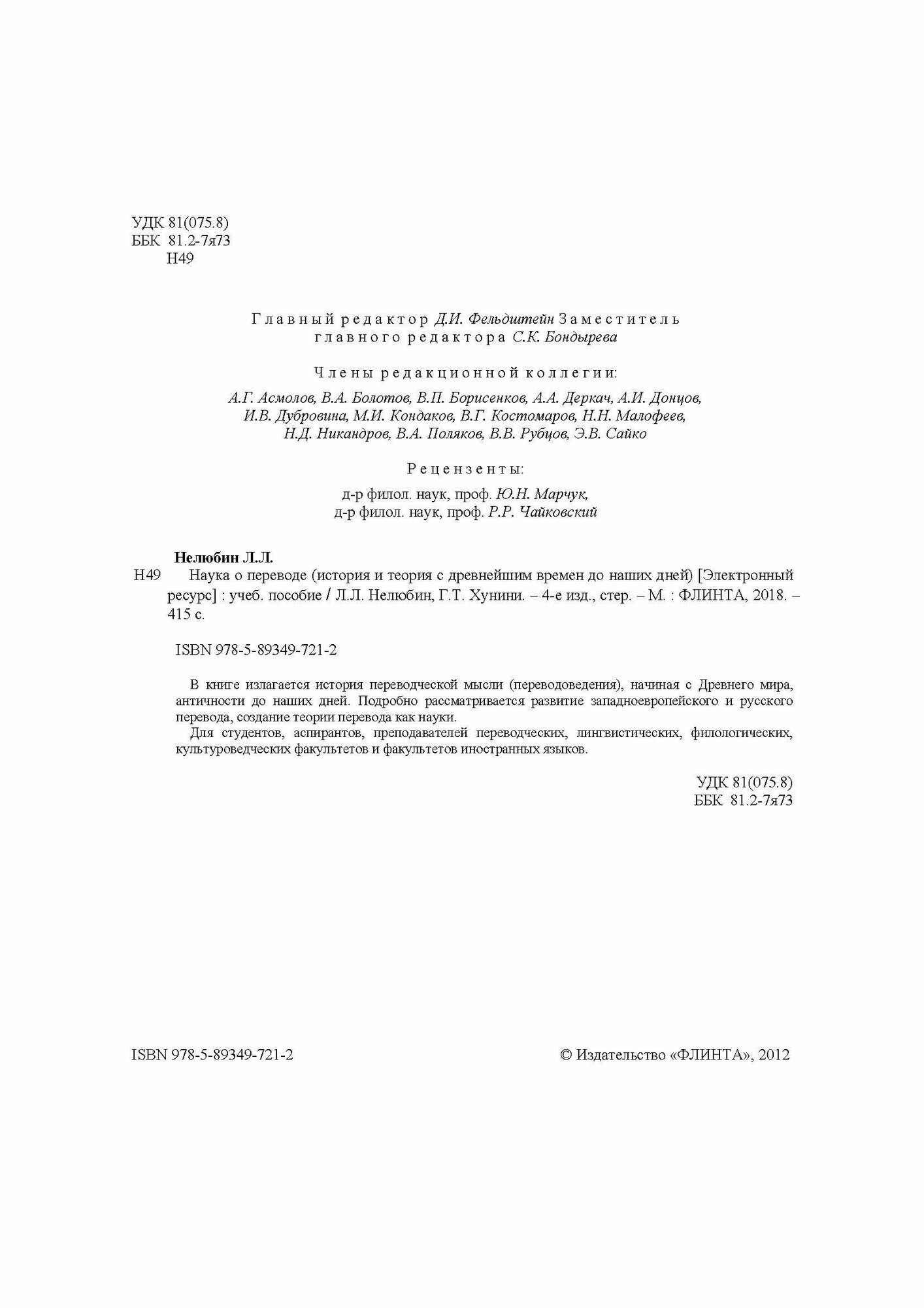 Информация о книге: В книге излагается история переводческой мысли (переводоведения), начиная с Древнего мира, античности до наших дней. Подробно рассматривается развитие западноевропейского и русского перевода, создание теории перевода как науки. Для студентов, аспирантов, преподавателей переводческих, лингвистических, филологических, культуроведческих факультетов и факультетов иностранных языков.