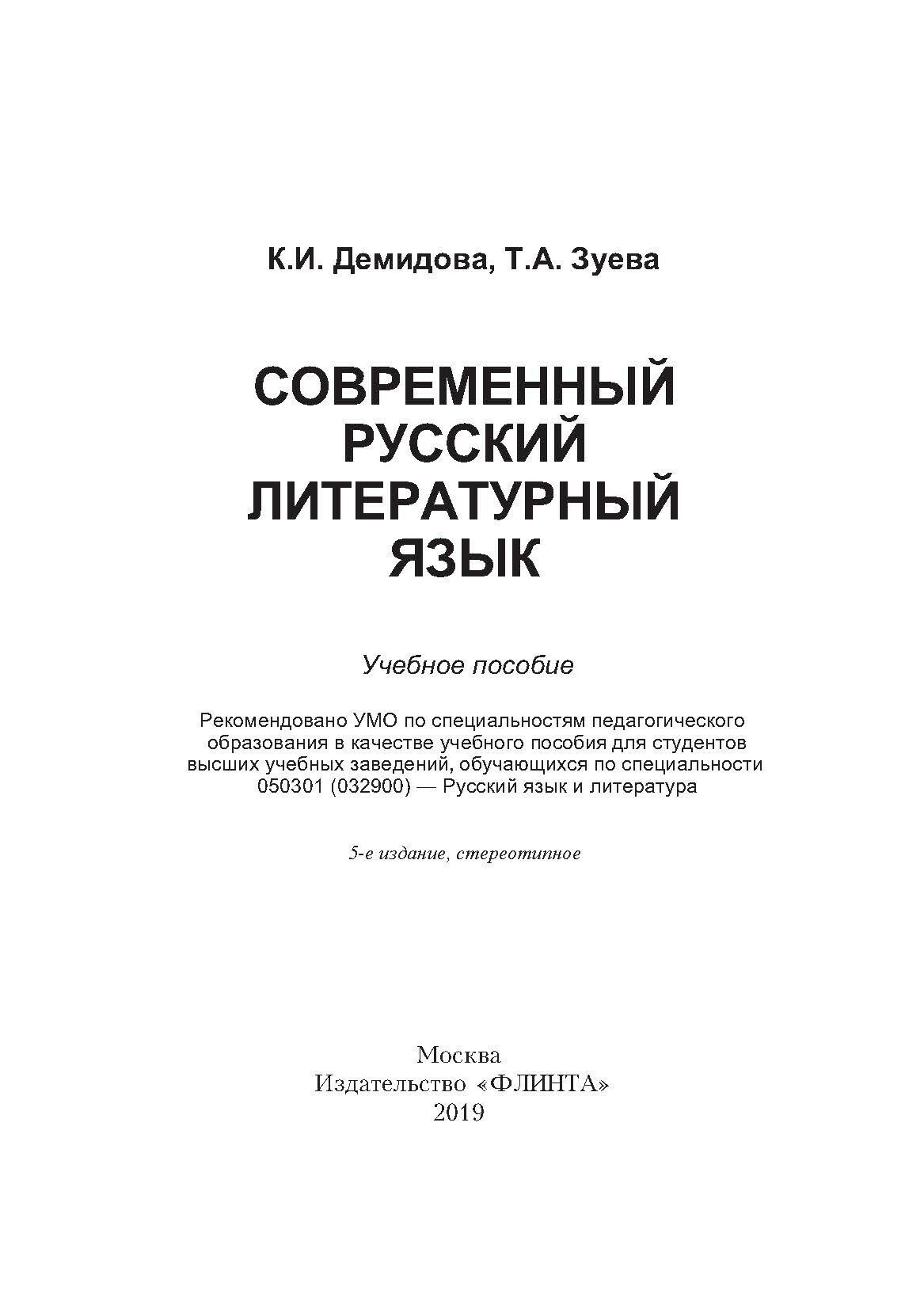 Современный русский литературный язык. Учебное пособие (Демидова Калерия Ивановна, Зуева Татьяна Алексеевна); Флинта, 2023