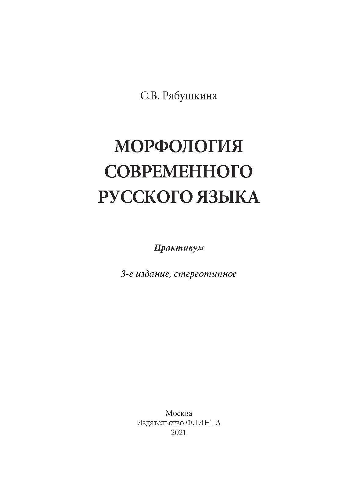 Морфология современного русского языка. Практикум (С. В. Рябушкина); ФЛИНТА, 2016