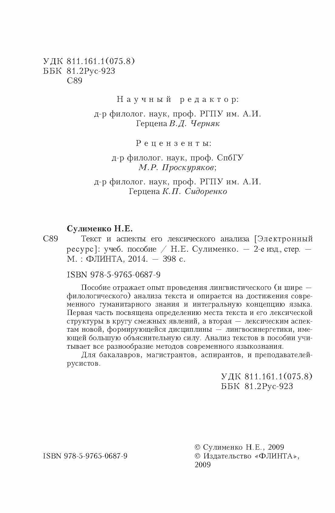 Текст и аспекты его лексического анализа (Сулименко Надежда Евгеньевна); Флинта, 2009