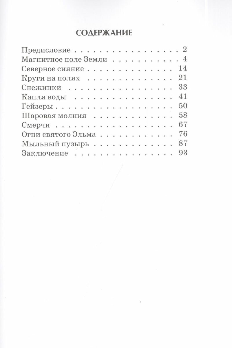 Книга понравилась. Красочные иллюстрации на глянцевой бумаге, твёрдый переплёт. Небольшой формат позволяет взять книгу с собой в дорогу. В книге рассказывается от таких явлениях природы как:магнитное поле Земли, Северное сияние, Снежинки, капля воды, гейзеры, шаровая молния, смерч, мыльный пузырь. О каждом явлении написано немного, но интересно. Книга подошла бы для младших и средних школьников. А также для родителей "почемучек"