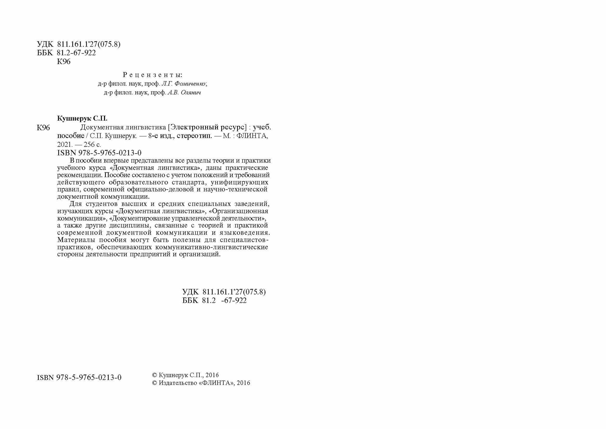 Документальная лингвистика (С. П. Кушнерук); ФЛИНТА, 2021