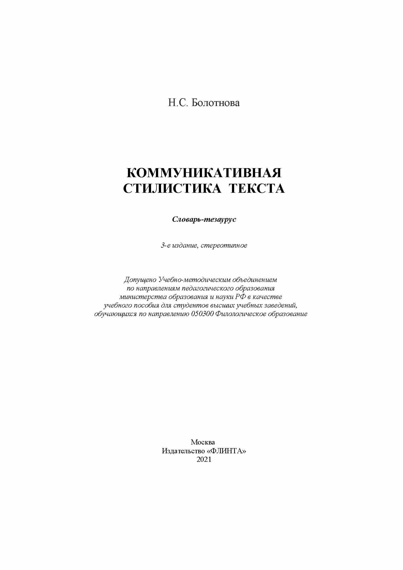 Коммуникативная стилистика текста (Болотнова Нина Сергеевна); Флинта, 2009