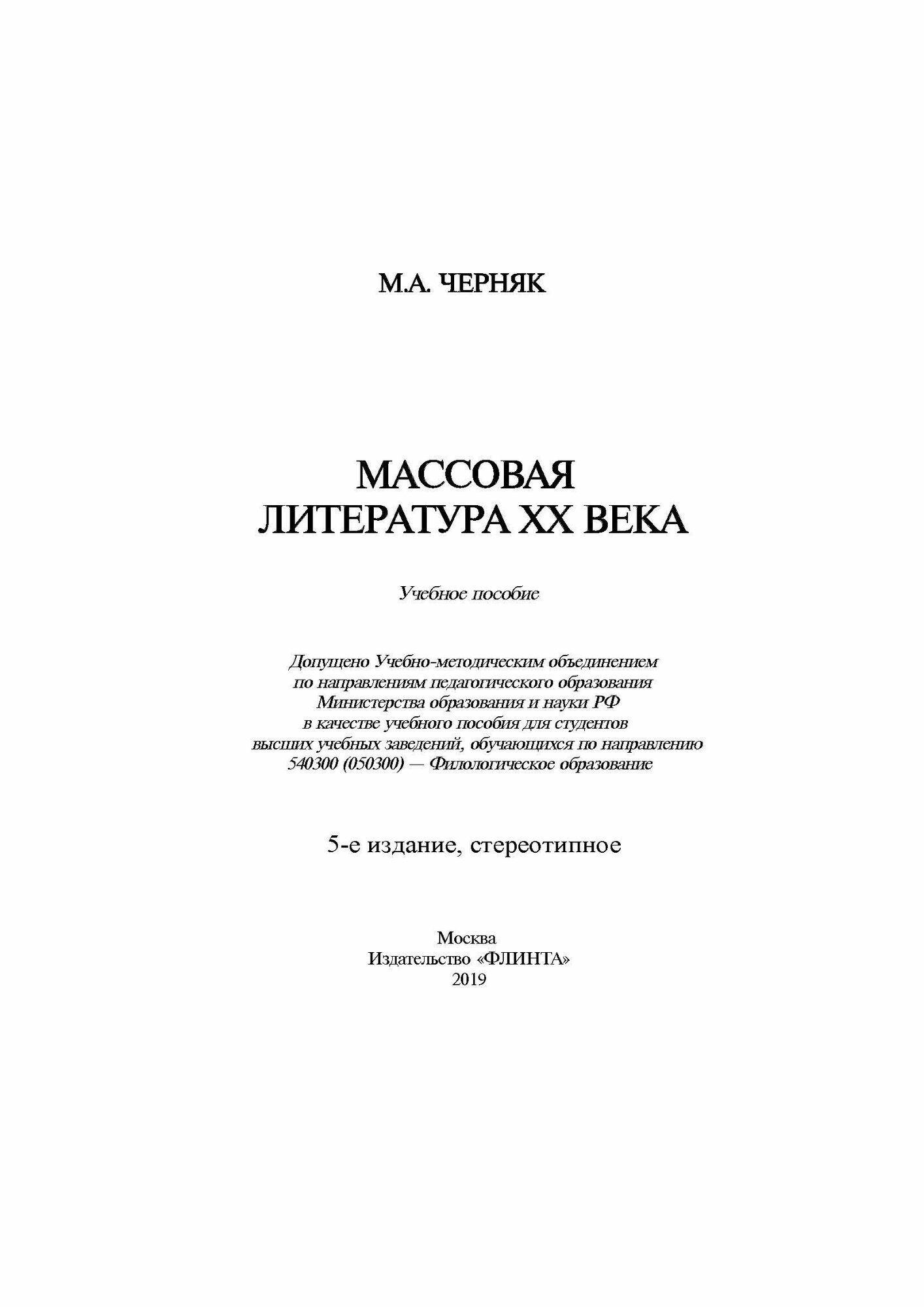 Массовая литература XX века (Мария Александровна Черняк); Флинта, 2007