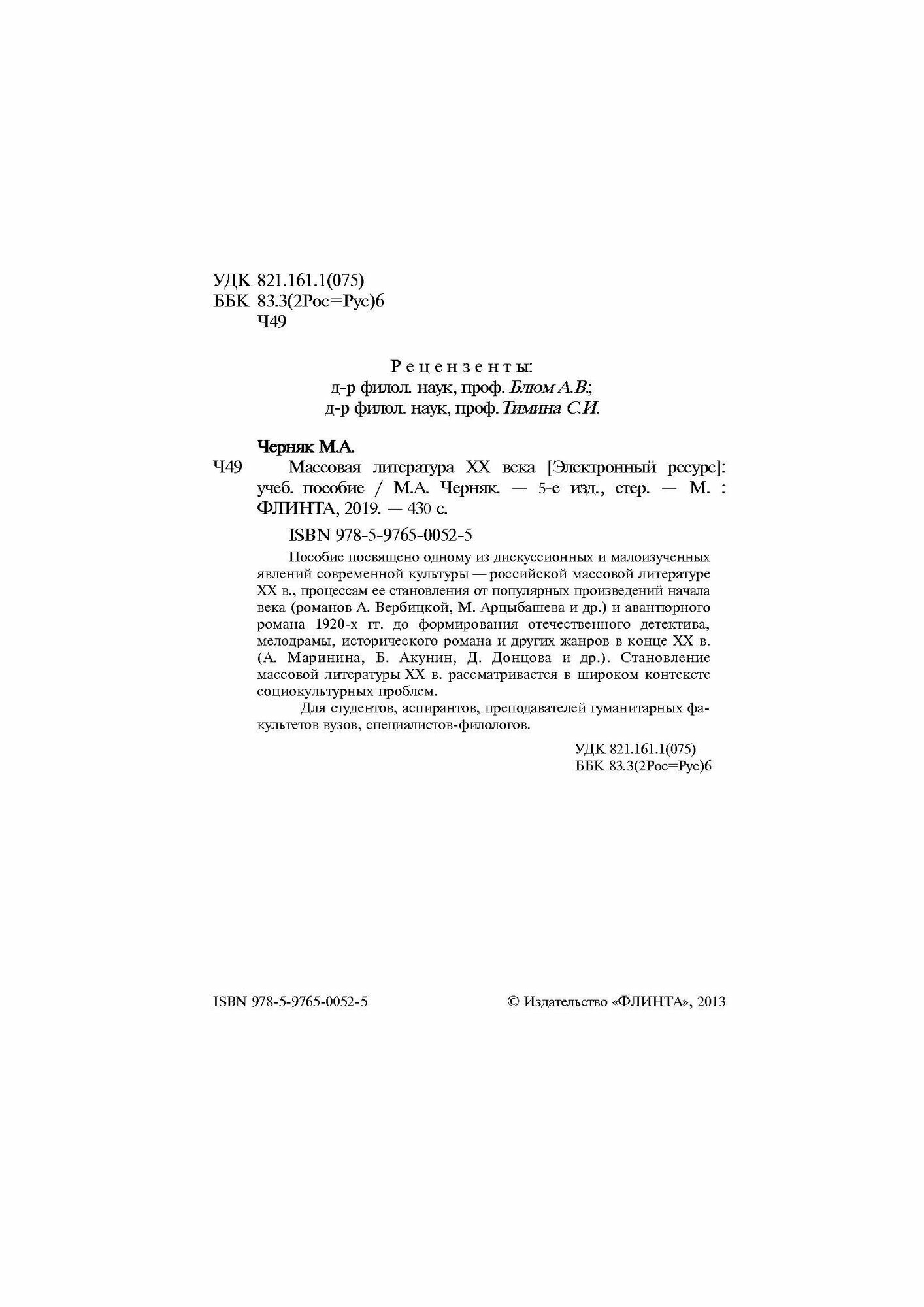 Сервис сравнения цен СкидкаГИД предлагает сравнить цены на товар «Книга: Массовая литература XX века (Мария Александровна Черняк); Флинта, 2007»