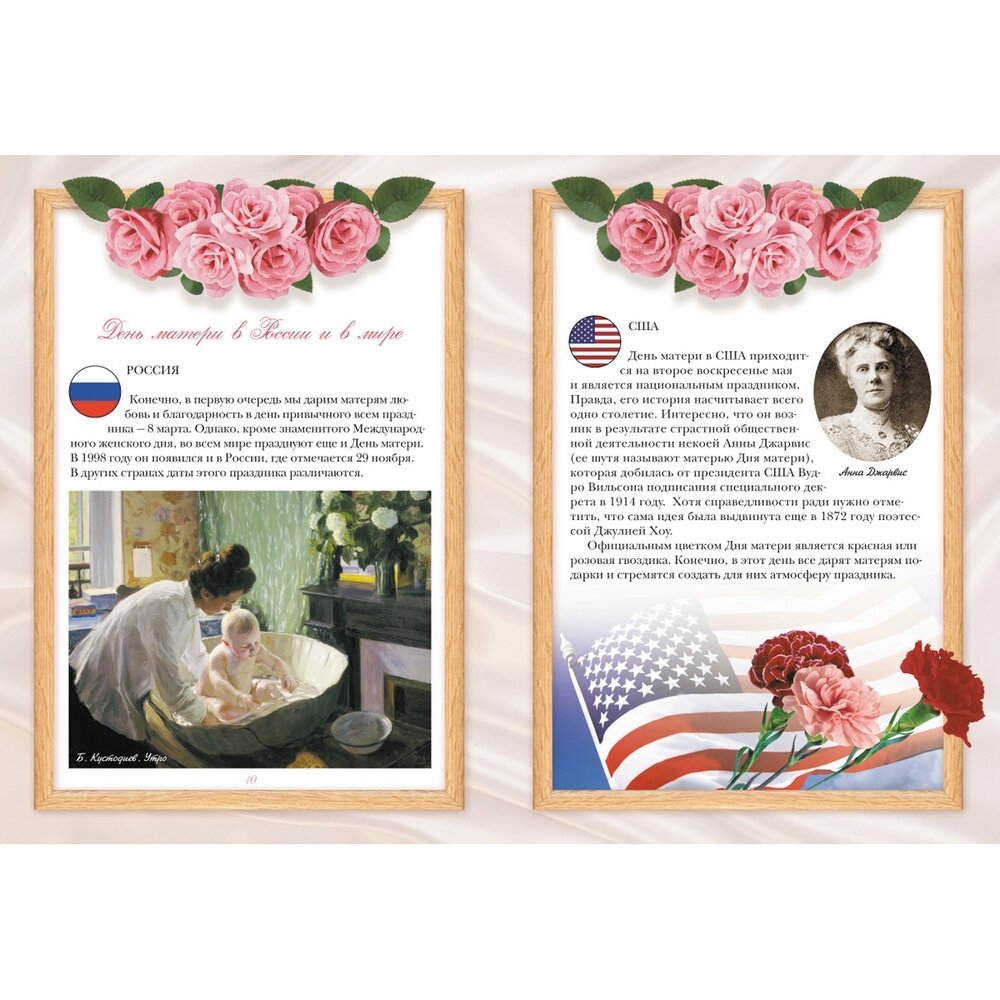 Эта книга отдает дань уважения матери. Ведь именно от нее каждый человек получает самый драгоценный подарок - жизнь. Любовью и благодарностью к матери проникнута каждая страница. Издание отражает роль образа матери в культуре и искусстве, проникнуто теплотой и добрым юмором, содержит интересную и познавательную информацию. Книга оформлена в лучших традициях подарочных изданий. Книга предназначена для широкого круга читателей.
