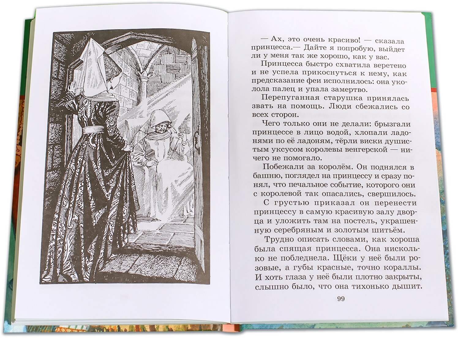 Несомненное достоинство этой книги цена и то, что в ней собраны почти все Сказки Перро (только двух не хватает). Пересказ классический Габбе и Булатовой. Бумага белая, не сильно просвечивает, читать не мешает. Шрифт средний. Иллюстрации черно-белые, их немного. Тем не менее ребенок 4 лет слушает с интересом и картинки ей нравятся.Покупкой довольны.