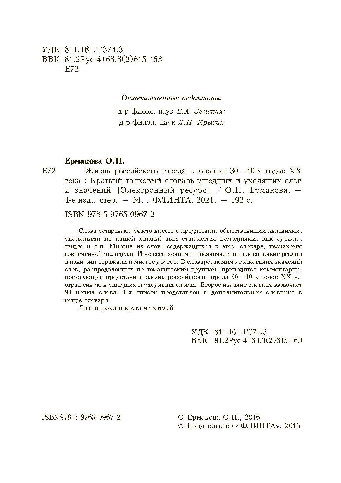 Жизнь российского города в лексике 30-40-х г XX века. Краткий толковый словарь ушедших слов (Ольга Павловна Ермакова); Флинта, 2011