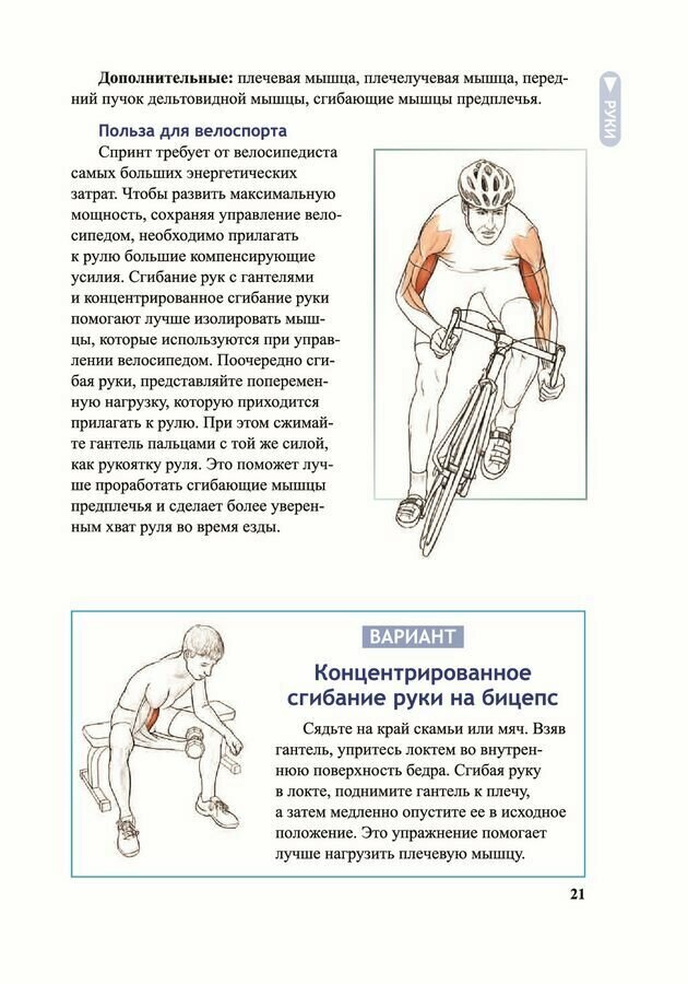 Вы хотите узнать, как повысить скорость езды на велосипеде, увеличить свою силу и выносливость? Это пособие покажет вам, каким образом можно улучшить спортивные достижения за счет оптимизации каждого движения. Здесь вы найдете 74 самых эффективных упражнения для велосипедистов, которые сопровождаются четкими пошаговыми инструкциями и цветными анатомическими иллюстрациями. Рисунки активно работающих мышц, участвующих в преодолении поворотов, подъемов, спусков и совершении спринтерских рывков, наглядно показывают, как то или иное упражнение связано с ездой на велосипеде.