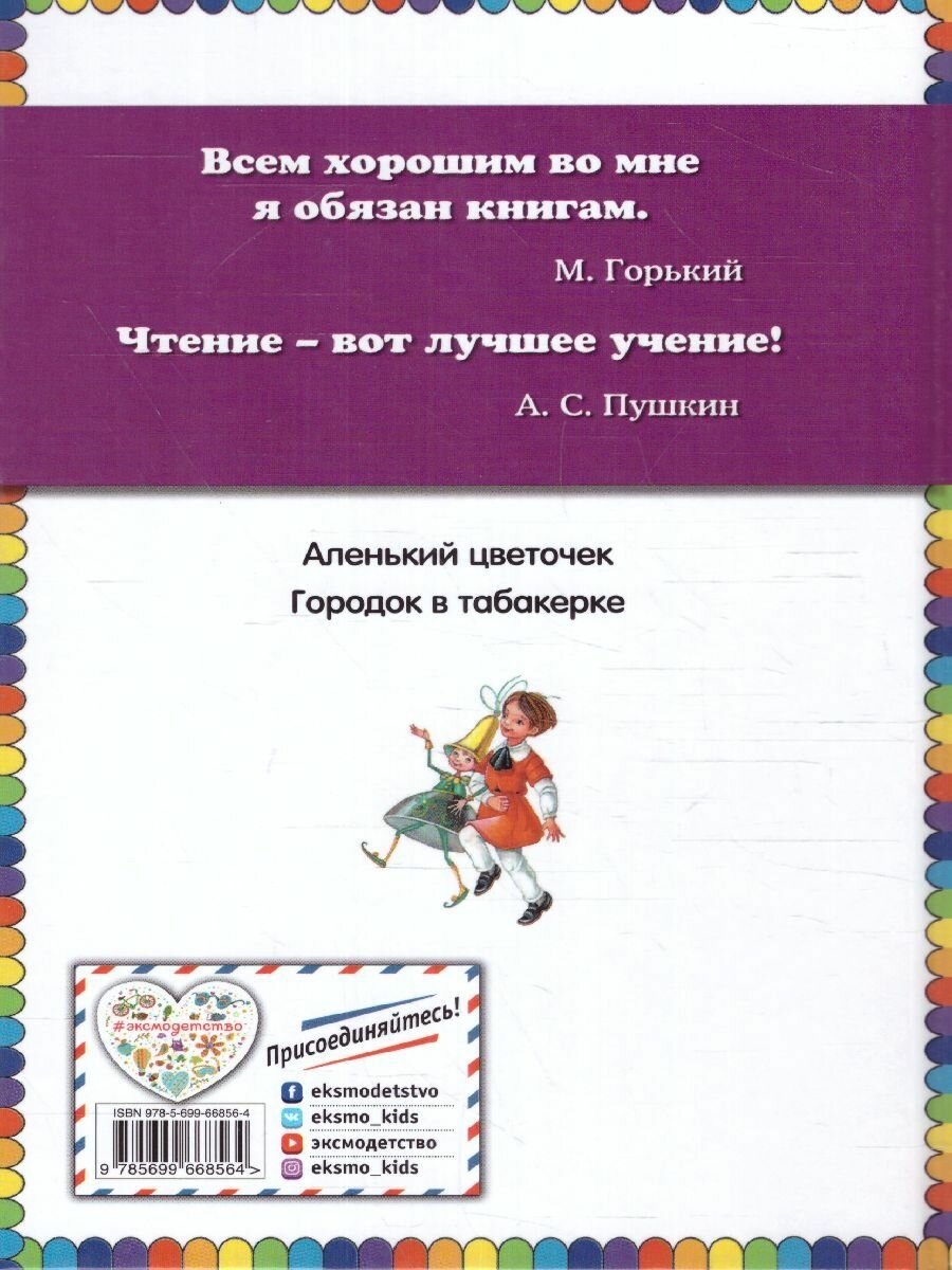 Вашему вниманию предлагается книжка, в которой Вы найдете две замечательные сказки "Город в табакерке" и "Аленький цветочек" в ярких иллюстрациях.