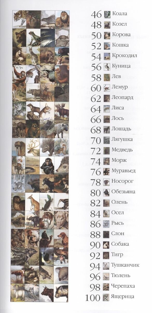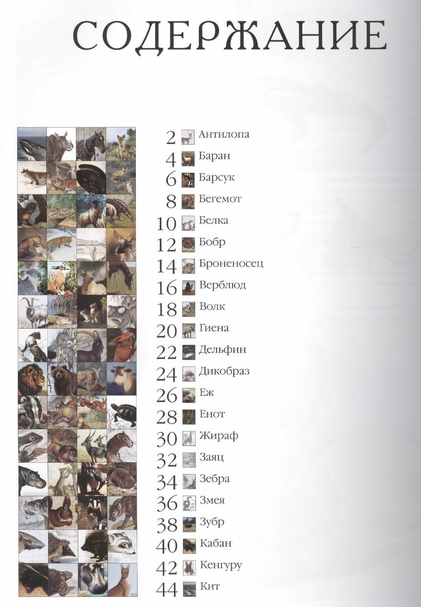 Хочу отметить, что книгу просто приятно держать в руках. Цвета приглушенные, но насыщенные. Содержание книги в алфавитном порядке - удобно искать. С ребенком 2.10 периодически заглядываем, то смотрим какие бываю хвосты у собак, у каких животных как расположены глаза... Нам интересно и другим рекомендую!