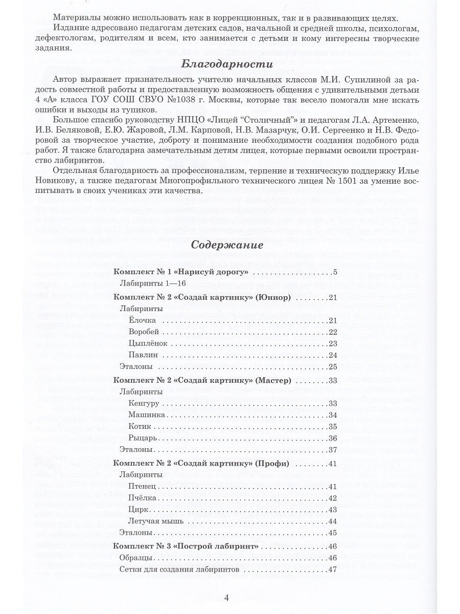 Прочитав первые три отсканированные страницы будет более понятно, как конкретно работать с книгой, потому что это не просто лабиринты, а усложненные. Далее привожу один пример по которому можно просмотреть задание (в отсканированных страницах). Если желаете сделать лабиринты многоразовыми, то можно листы просто вставлять в мультифоры, т.к. если заламинировать, при многократной работе на поверхности появляются дефекты (опробовано), а исправить уже ничего нельзя. А лучше каждый раз копировать и раздавать детям. -