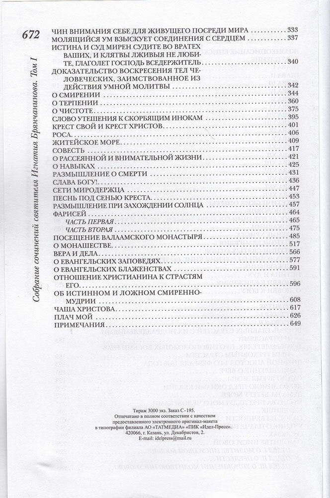 Я очень довольна приобретением этих книг! Перед покупкой я рассматривала различные варианты покупки творений св. Игнатия (и порознь, и в собраниях сочинений 5, 7, 8 томами, с разным качеством оформления). Остановила свой выбор именно на данном собрании сочинений в 7-ми томах. На мой взгляд, оно является одновременно и максимально возможным по объёму, и наиболее демократичным по цене, и достойным по оформлению. По содержанию - Слава Богу, что имею возможность читать это, низкий поклон св. Игнатию! по качеству бумаги и печати - хорошее, по оформлению - всё хорошо, немного узки поля, но это не мешает восприятию. Спасибо всем, кто причастен к рождению этих книг!