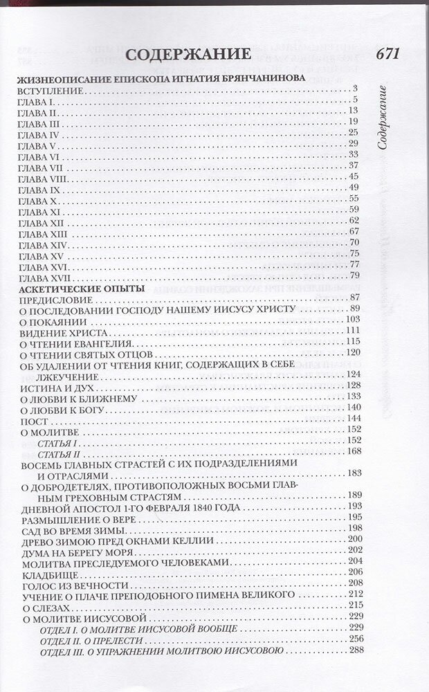 В собрание сочинений входят: том I "Жизнеописание", "Аскетические опыты"; том II "Аскетические опыты"; том III "Слово о человеке", "Слово о смерти"; том IV "Аскетическая проповедь"; том V "Приношение современному монашеству"; том VI "Отечник"; том VII "Избранные письма".