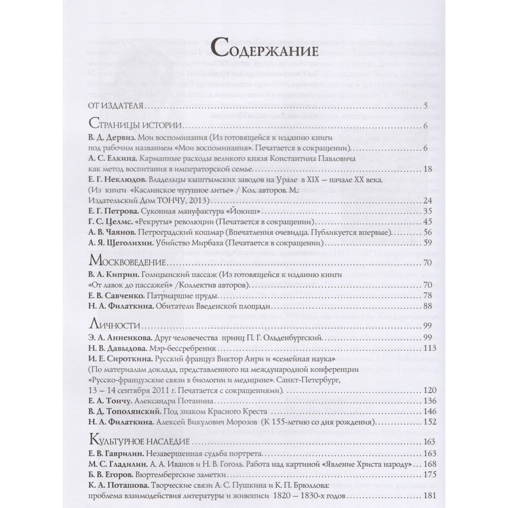 Данное издание включает очерки по истории России, москвоведческие статьи, статьи о выдающихся личностях, внесших значительный вклад в развитие отечественной науки и культуры. В Альманах добавлены новые рубрики "Культурное наследие" и "Литературная страница". Издание содержит большое количество иллюстраций.