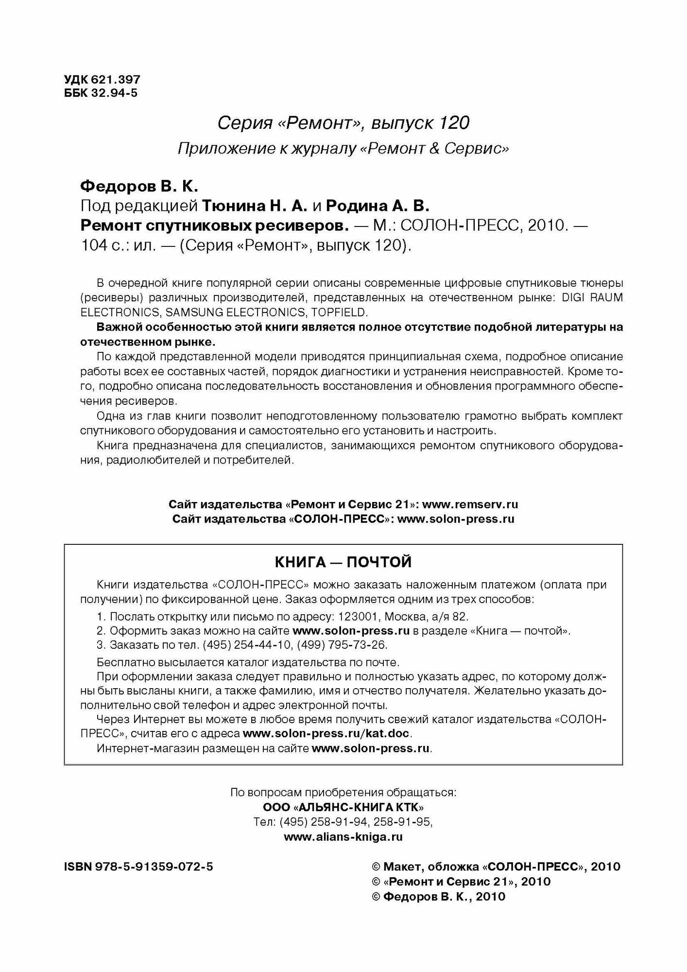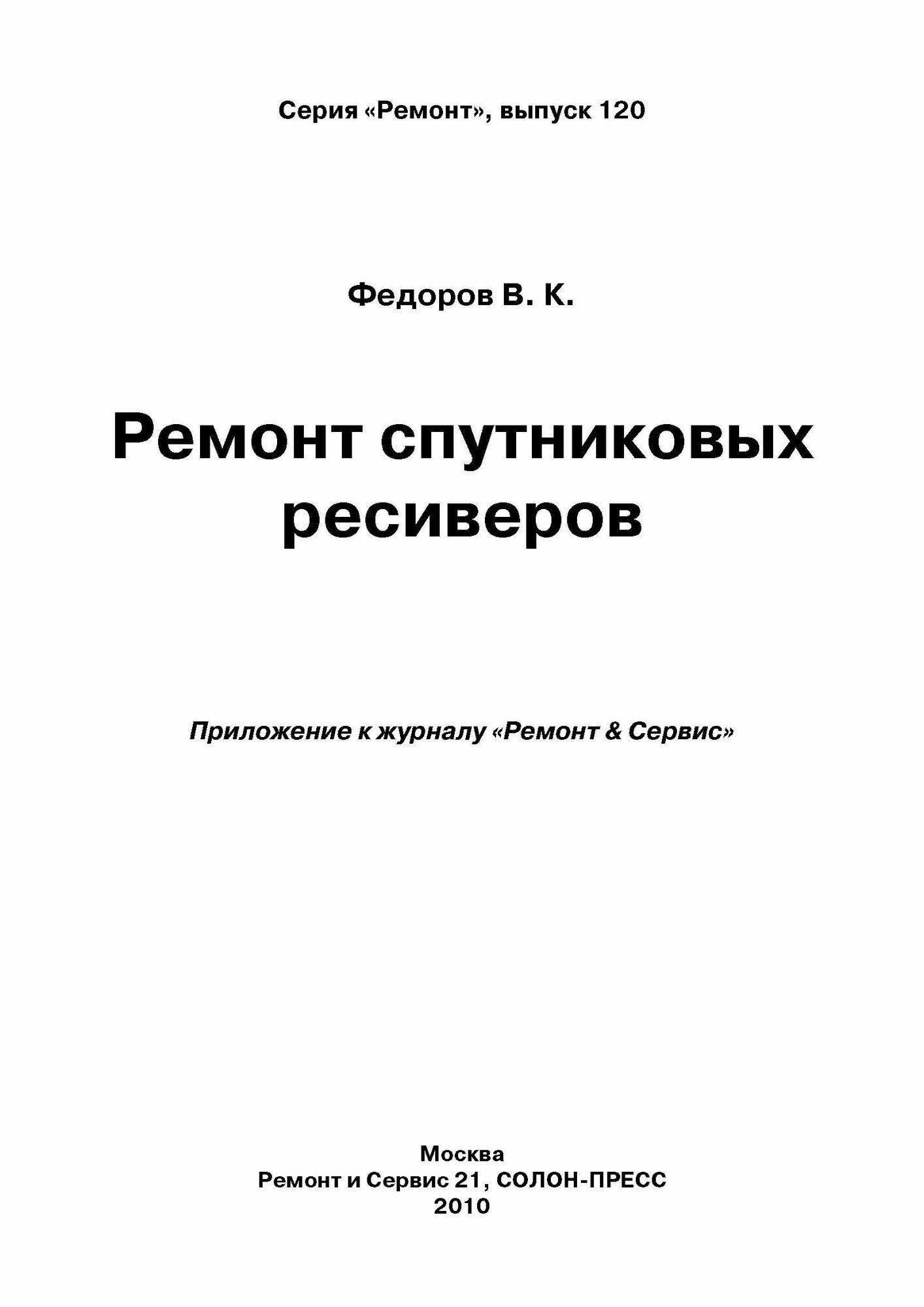 Выпуск 120. Ремонт спутниковых ресиверов (Федоров Василий Константинович); СОЛОН-Пресс, 2010