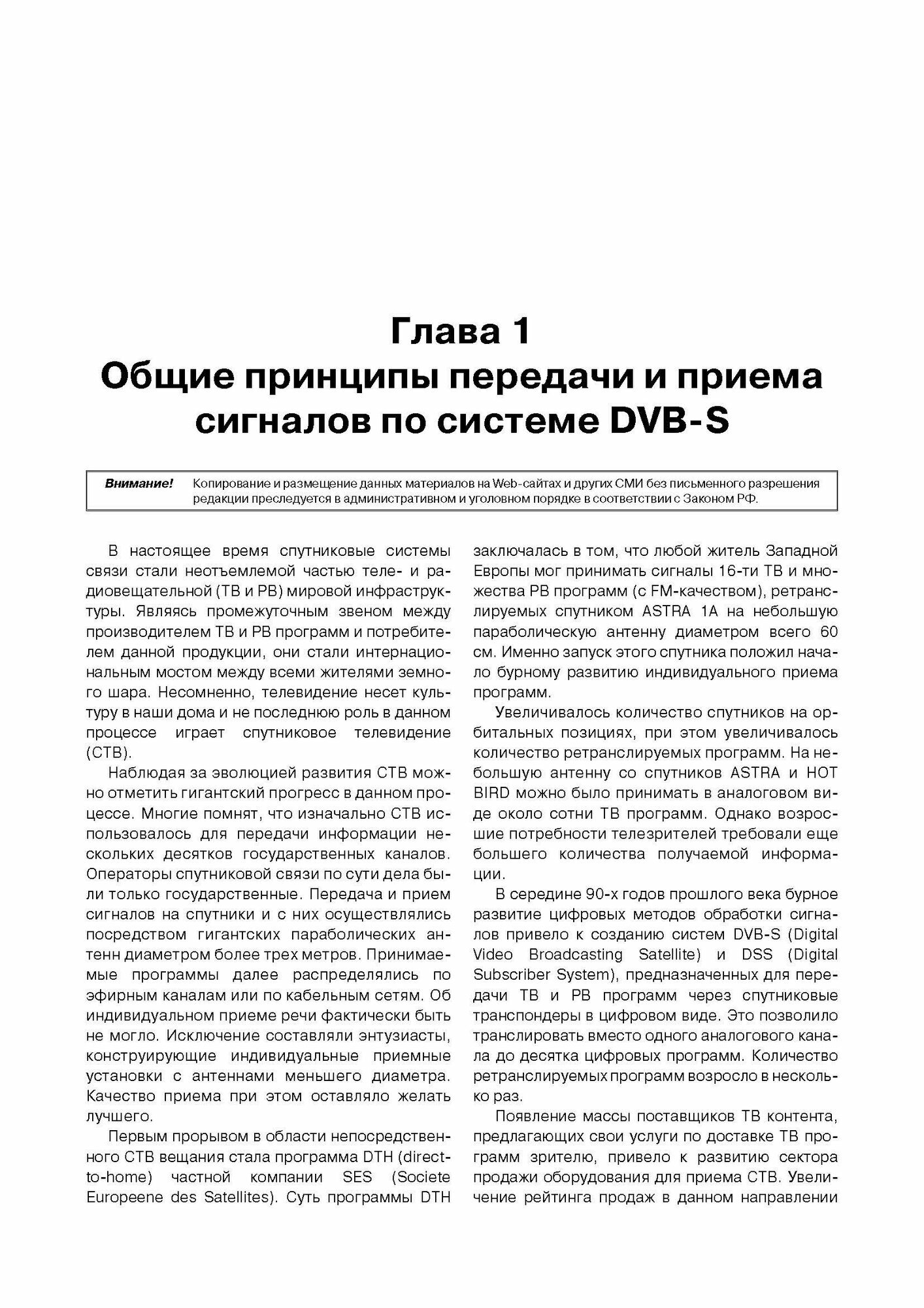 Одна из глав книги позволит неискушенному пользователю по всем правилам избрать комплект спутникового оборудования и самостоятельно его установить и настроить.
