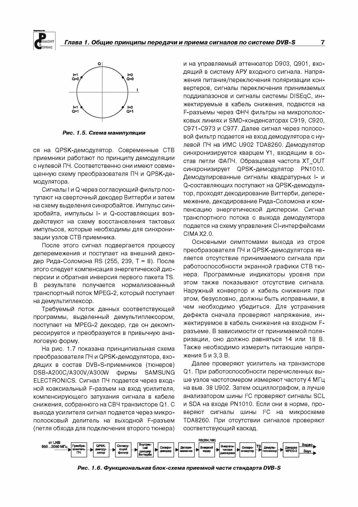 По каждой которая представлена модели приведены принципиальная схема, детальное описание работы всех ее составных частей, порядок диагностики и ликвидации неполадок. Кроме того, детально описана очередность восстановления и обновления программного обеспечения ресиверов.