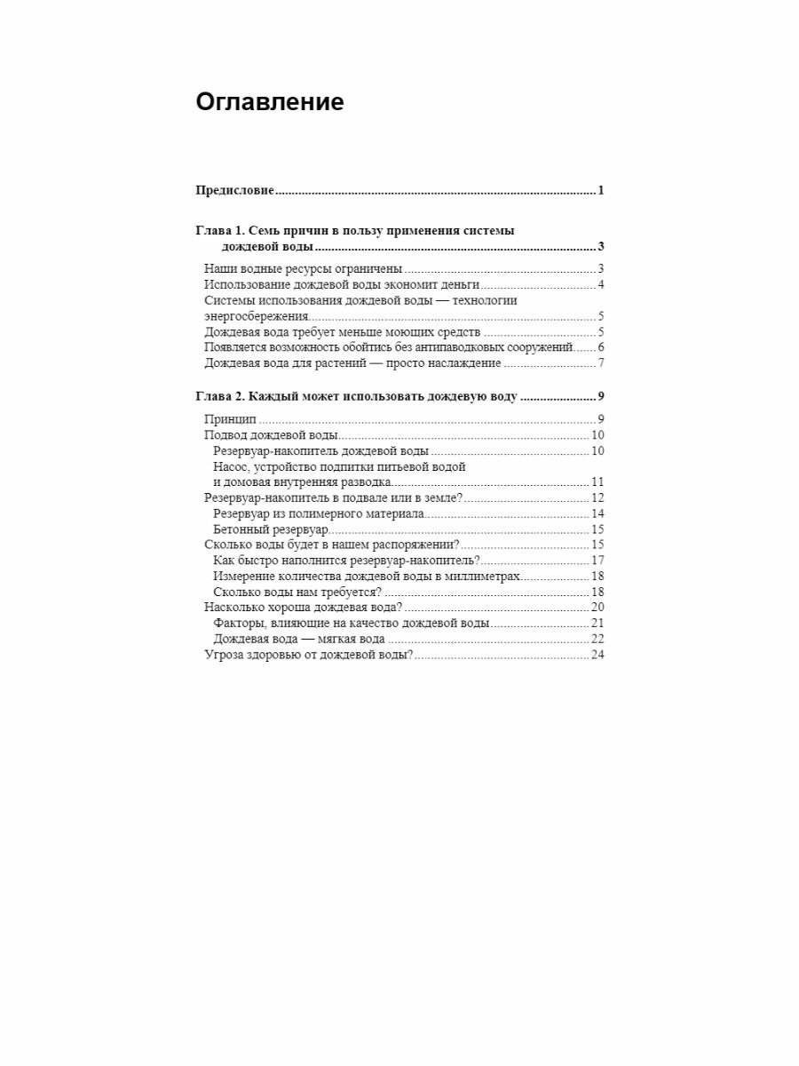 .В ней рассмотрены вопросы планирования и строительства различных систем - от простых конструкций из садовой бочки до автоматических компактные Описаны различные технические устройства, даны рекомендации по их выбору и компоновке. Большое количество чертежей и изображений наглядно демонстрируют, как собираются, устанавливаются и эксплуатируются системы использования дождевой воды.