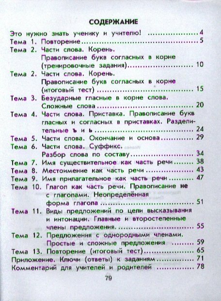Тетрадь представляет собой сборник заданий в виде тестов, отражающих содержание основных разделов и тем курса русского языка 3-го класса. Тестовые задания имеют разный уровень сложности - необходимый и повышенный. Задания снабжены ключами, которые помогут учащимся производить самооценку, а учителям и родителям диагностировать уровень сформированности у учеников различных умений.