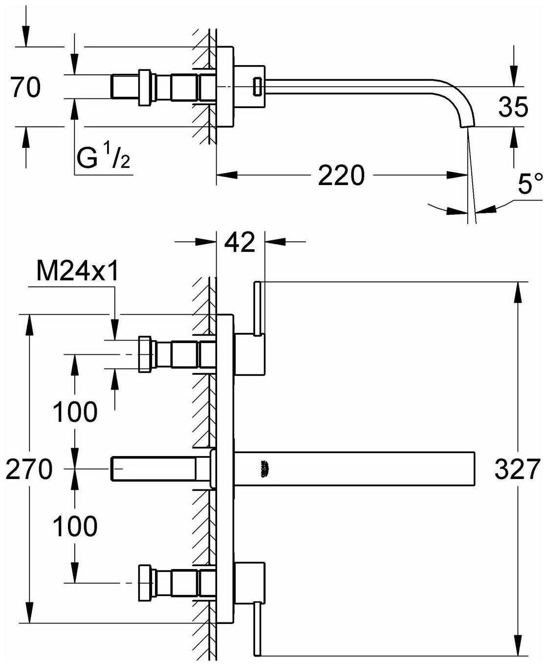 Смеситель для раковины Grohe Allure устанавливается на 3 монтажных отверстия, вынос - 220 мм, предназначен для комплекта верхней монтажной части (для 29025). Модель предназначена для монтажа на вертикальную поверхность (настенный тип монтажа), без встроенного механизма и имеет металлическую плату.