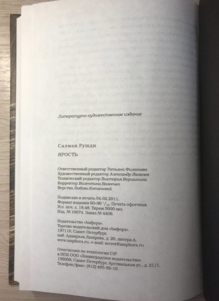 Книга: Ярость (Рушди Салман Ахмед); Амфора, 2011