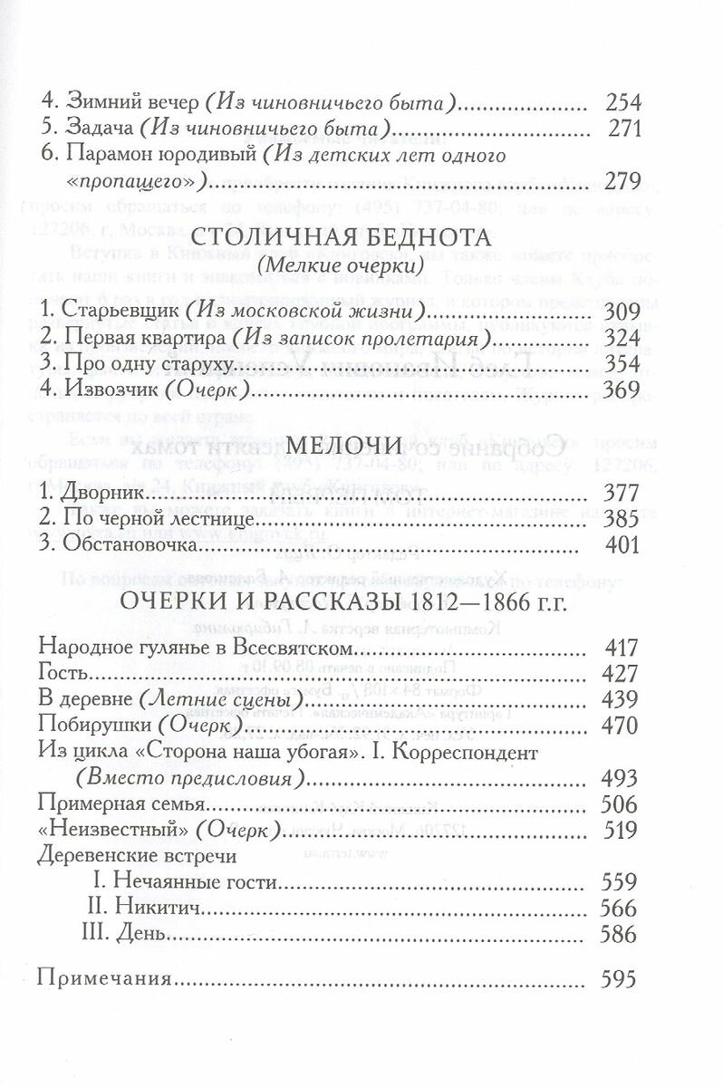 В первый том вошли очерки "Нравы Растеряевой улицы", "Растеряевские типы и сцены", "Столичная беднота", "Мелочи" и "Очерки и рассказы 1812-1866 гг.".