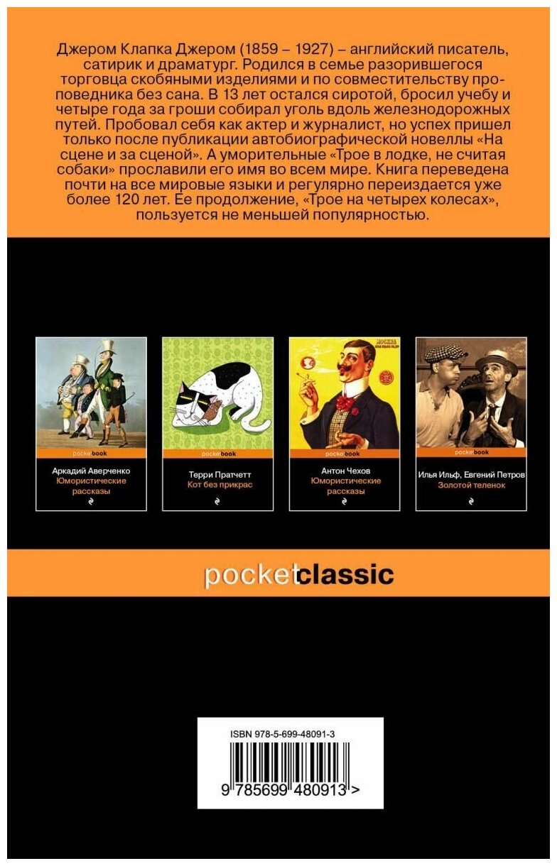 Джером Клапка Джером - это зарубежный классик и, его юмористические романы определенно стоит читать. Все книги данной серии выполнены хорошо. На обложке печатают знаменитые картины, что и красиво и даёт возможность немного приобщиться к живописи. Напечатано и пропечатано всё на хорошем уровне средним шрифтом. В общем и читать интересно эту книгу и в руках держать приятно, а ещё эта серия книг очень симпатично смотриться на книжной полке.
